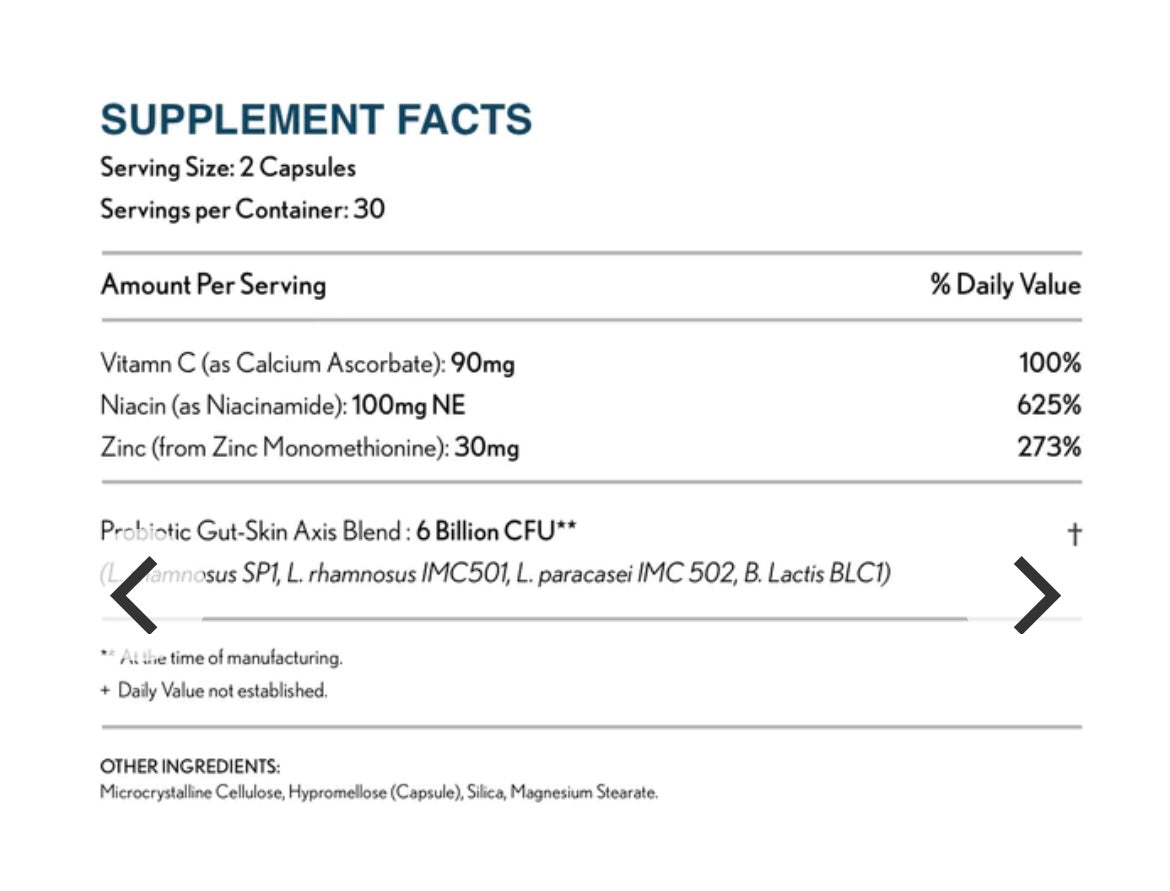 Designed by the #1 Professional Acne Brand, Clear Skin Restore contains Zinc and a proprietary Probiotic Gut-Skin Axis Blend to help clear skin while supporting overall health and wellness.*