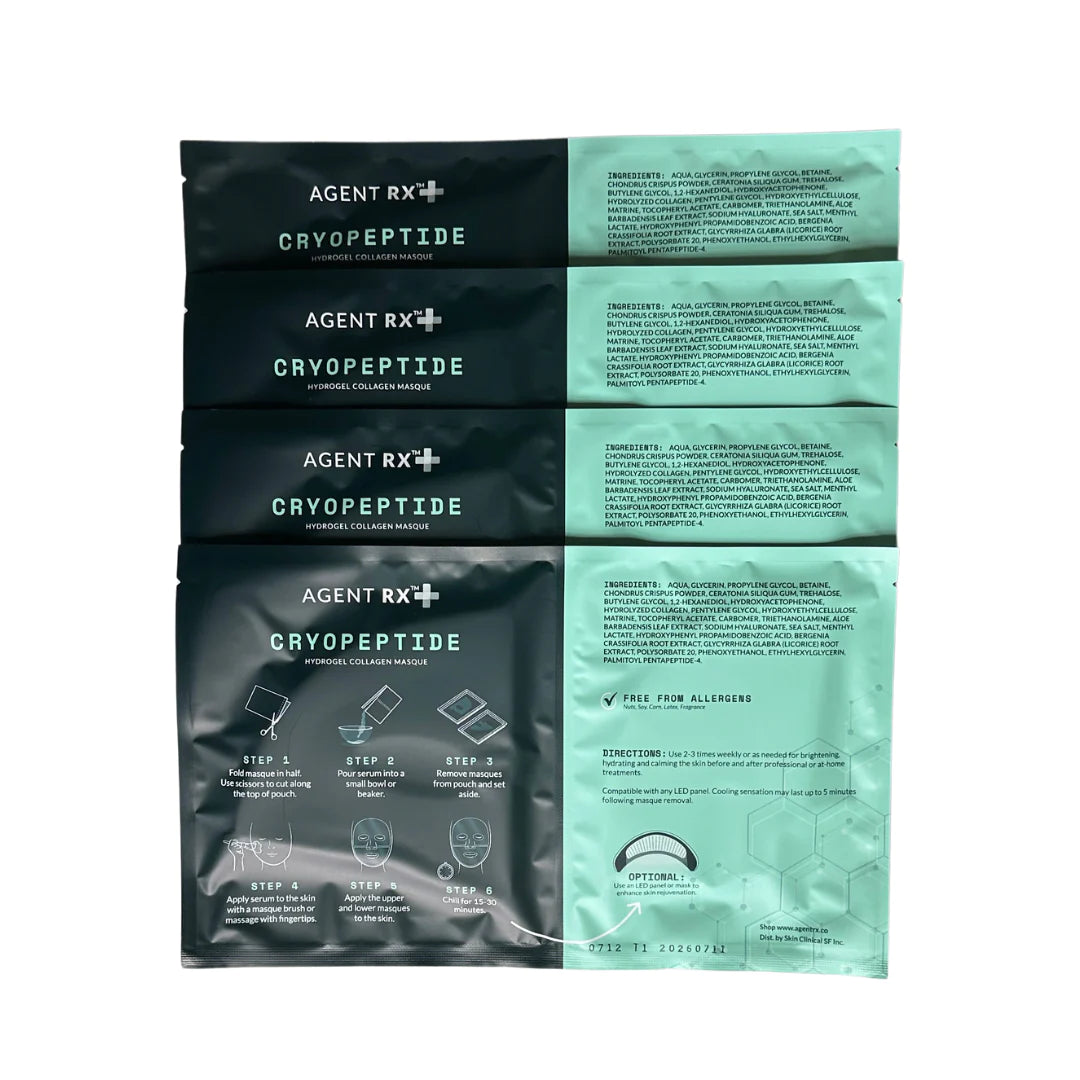 CryoPeptide Masque includes a powerful combination of ingredients including menthol-lactate to provide a soothing and cooling effect. It also includes licorice root to give the skin an immediate luminous glow and palmitoyl peptide-4 to reduce the look of fine lines an wrinkles. The collagen hydrogel matrix provides occlusion so that your skin can drink up all of the benefits.The result is plumped up and luxuriously hydrated skin. Enhance results by using this mask under an LED light panel!
