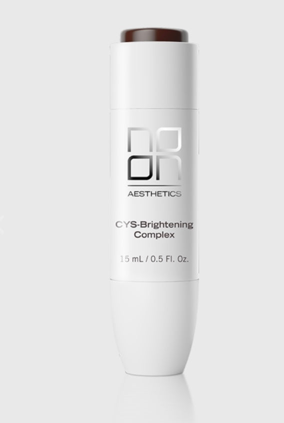 CYS-Brightening Complex harnesses NOON Aesthetics’ revolutionary MelanoShield™ technology (patent pending) to deliver the unparalleled brightening power of 6% Cysteamine HCl with unprecedented comfort and convenience. This advanced formula takes a broad-spectrum approach to combating stubborn hyperpigmentation through its combination of powerful brightening ingredients including Cysteamine HCl and Niacinamide. NOON further enhances results by targeting persistent discoloration and dark spots through multiple pathways while dramatically improving the user experience.