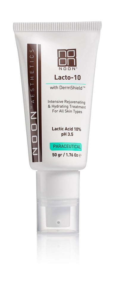 Lacto-10 is a one-of-a-kind daily cream that actively promotes skin rejuvenation while refining skin texture and balancing its tone and moisture levels. 10% Lactic Acid (pH 3.5) is formulated with the protective DermShield™️ complex to allow users of all skin types to enjoy the benefits of high concentration Alpha Hydroxy Acid (AHA) daily, all year round, and without the typical irritation that is usually associated with highly concentrated AHA. Lacto-10 is oil-free, easily absorbed, and perfectly suitable for all skin types.